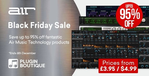 Plugin Boutique has introduced a Black Friday sale on digital devices by AIR Music Technology, providing Save as much as 95% off for the subsequent few weeks.