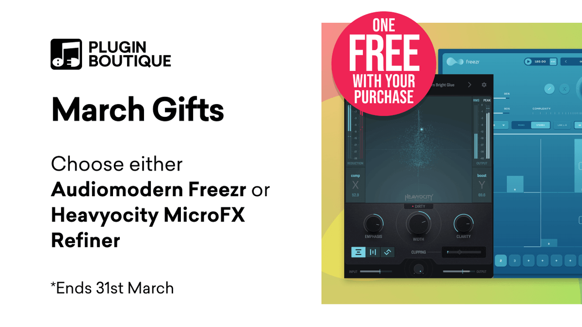 Plugin Boutique has introduced that a purchase order at its retailer comes with a free copy of both Audiomodern’s Freezr or Heavyocity’s MicroFX Refiner by way of the month of March.
