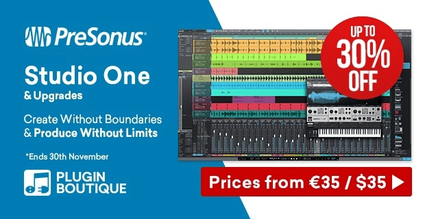 Plugin Boutique has introduced a Black Friday sale with 30% off on PreSonus, with offers on the Studio One digital audio workstation software program and Notion notation software program.