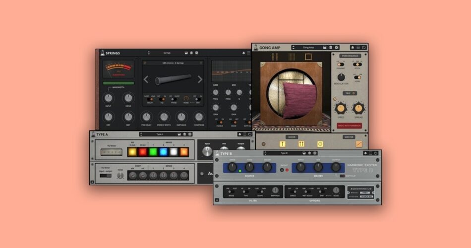 On sale for $99 USD, the bundle accommodates the Gong Amp experimental amplifier, Springs classic spring reverb impact, Type A classic enhancer and Type B classic exciter.