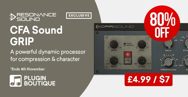 Plugin Boutique has launched an unique sale on the GRIP Valve Drive Compressor, providing 80% off on the highly effective dynamic processor by CFA-Sound.