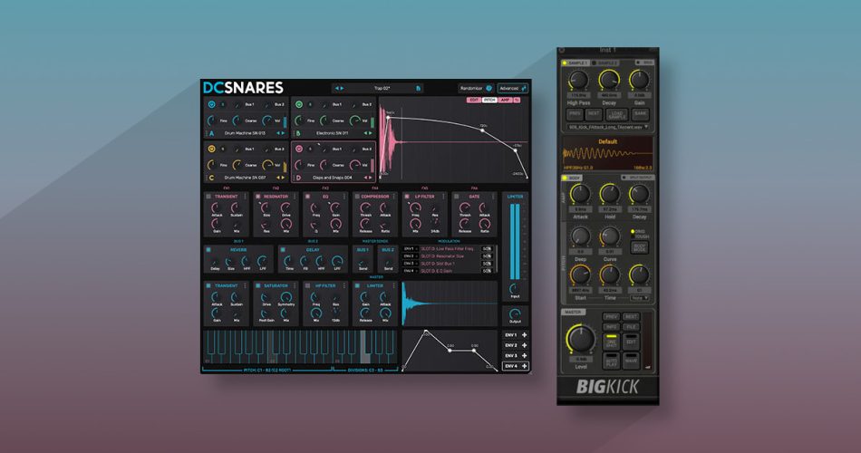 DC Snares offers multi-layered snare samples with adjustments for tuning, decay, and transient shaping. BigKick focuses on kick drums, delivering punchy lows and customizable attack characteristics. Together, they enhance drum kits in digital audio workstations.