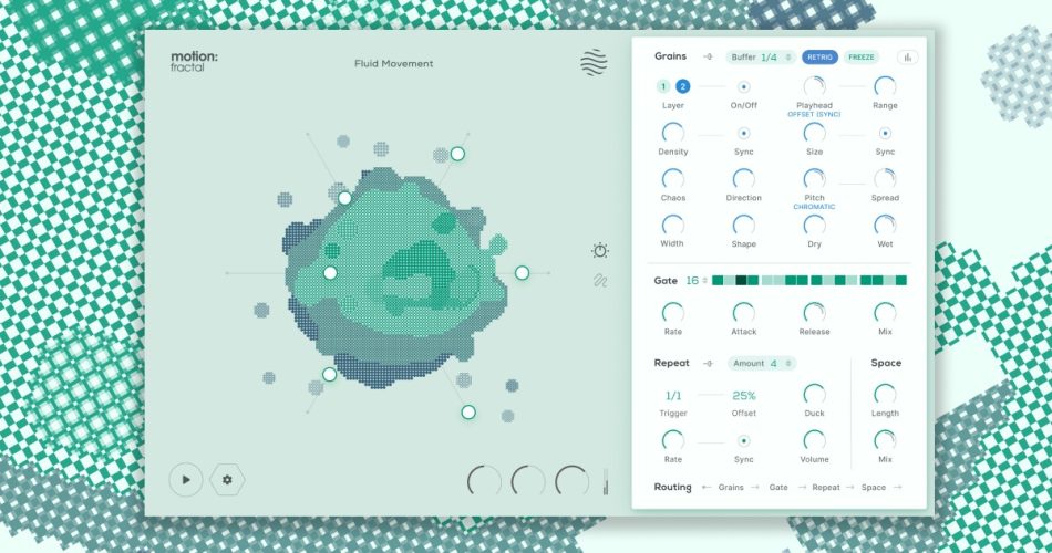 Motion: Fractal unleashes endless motion, texture, and modern sonic transformation through dual granular engines, a reactive trance gate, and stutter-repeat effects.