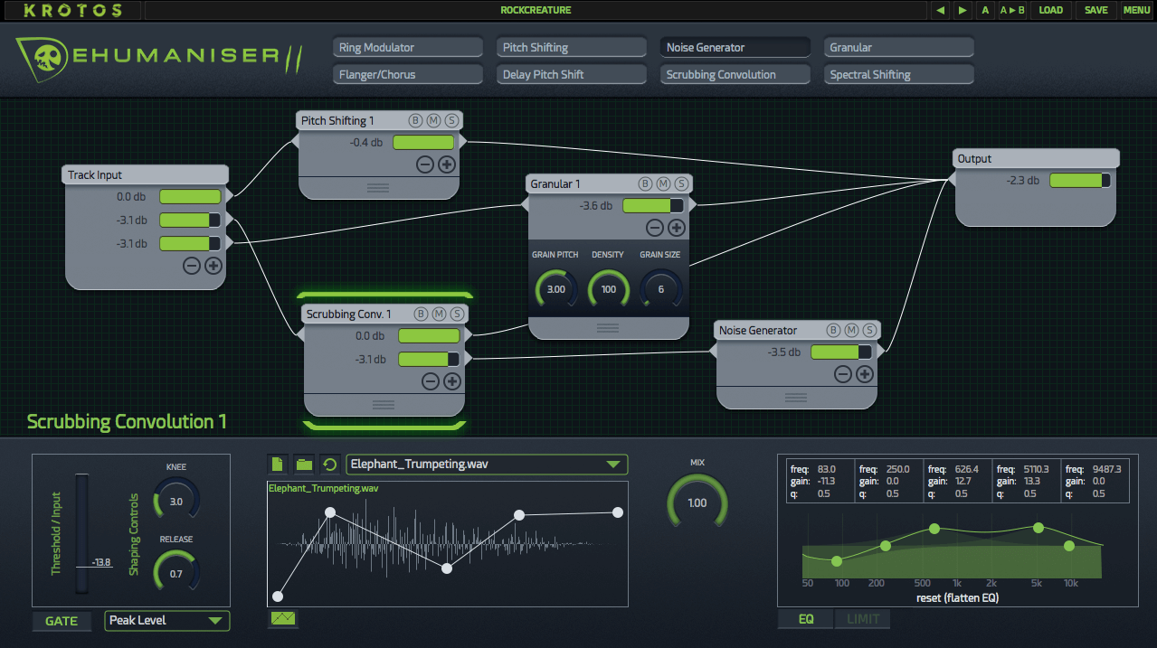 The modular, node-based processor eliminates the time and expense historically required in creature sound design by opening-up jam-packed stuffed with presets and pre-analyzed sound libraries.