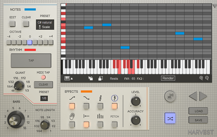 Harvest lets you generate distinctive loops, subtly tweak melodies and drum patterns, or create MIDI chaos.