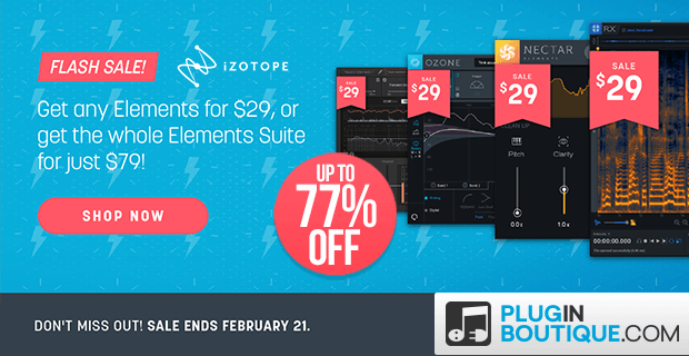 Plugin Boutique has announced the iZotope Elements Flash Sale, an opportunity to purchase the Elements series plugins at a discount of up to 77% off the regular price.