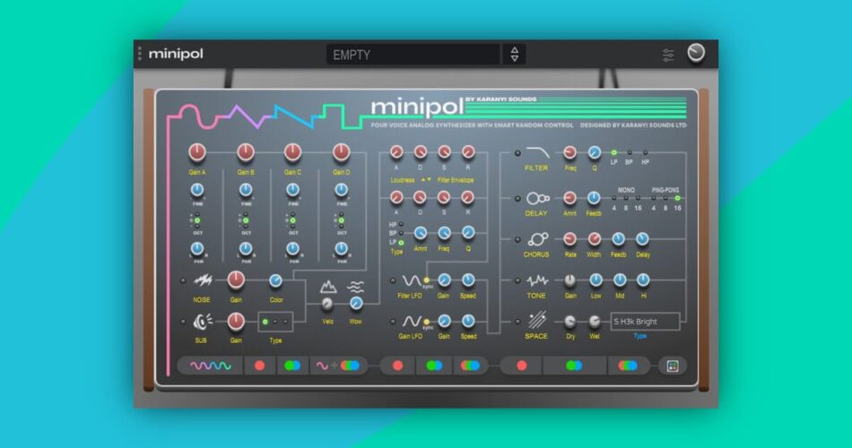 Meet Karanyi Sounds’ really initially virtual instrument, Minipol– an effective virtual analogue synthesizer with a great deal of enjoyable and a distinct Smart Random function!