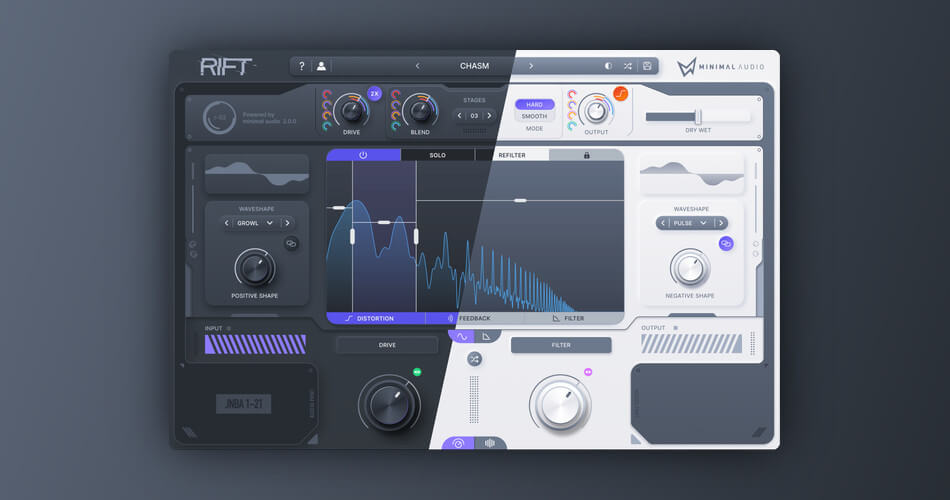 At its core, Rift 2 features a waveform engine for precise control over algorithm combinations and visual feedback. Users can drive the distortion and adjust processing stages for rich harmonics, then expand with flexible feedback, morphing filters, and modulation options.