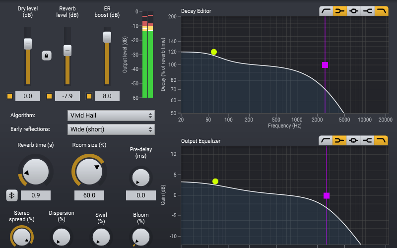 The very first Verberate variation currently raised the bar. Variation 2 presents the Vivid Hall algorithm that includes time variation to prevent the tightness that afflicts convolution based reverbs while maintaining the natural high-density reverb tails of Verberate 1.