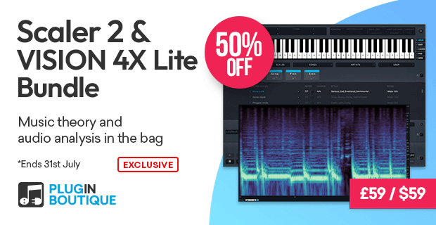 Plugin Boutique is currently offering a 50% discount on an exclusive bundle of Scaler 2 and VISION 4X Lite. This bundle provides producers with a great deal on plugins for idea generation and music theory, as well as refining their sound through deep audio analysis.