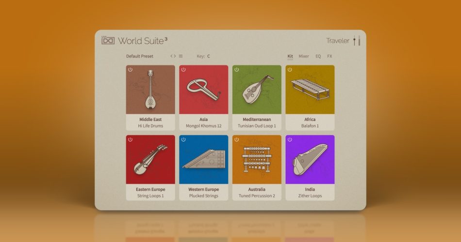 World Suite 3 provides a collection of virtual instruments featuring traditional and ethnic sounds from regions including Africa, Asia, the Americas, and the Middle East. It includes 430 instruments, over 1,900 hand-crafted presets, and more than 12,000 loops and phrases.