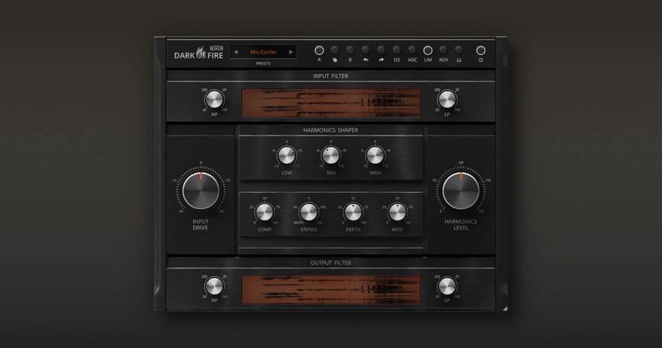 DarkFire works on specific elements like adding low-end punch and warmth to a kick or bass. It also applies high-end width and sparkle to a vocal or guitar, or richness to an entire mix.