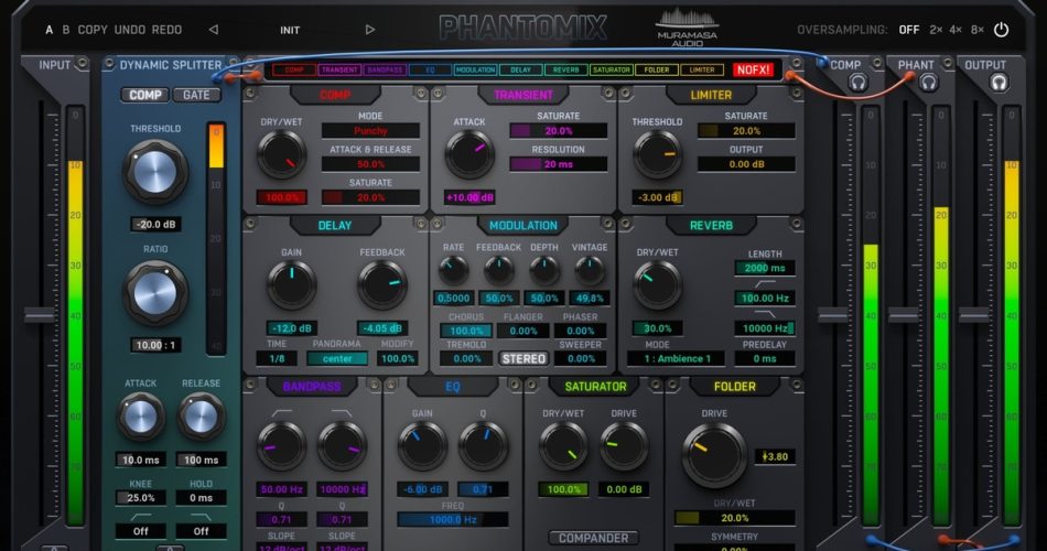 Phantomix redefines audio processing by capturing elements that conventional compressors remove, such as subtle dynamics and vibrant transients. It then recycles these into a suite of effects, transforming potentially lost audio into enhanced output.