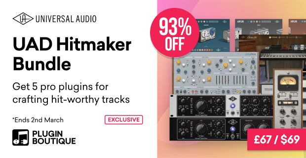 Plugin Boutique continues its 13th anniversary celebration with a limited time sale on the UAD Hitmaker Bundle, offering a 93% discount on the exclusive bundle comprising Verve Analog Machines, PolyMAX Synth, LA-6176 Signature Channel Strip, Electra 88 Vintage Keyboard Studio, and Pure Plate Verb.