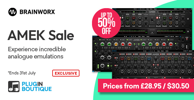 Plugin Boutique has announced an exclusive sale on a selection of AMEK plugins from Brainworx, offering discounts of up to 50% for a limited time.