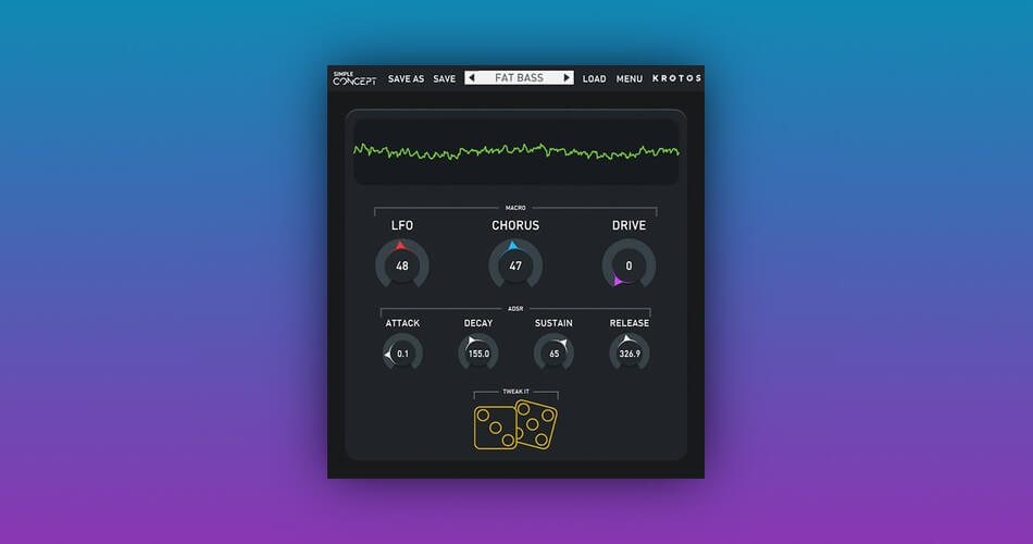Shape modulation and effects, and choose from a diverse selection of 80 presets. With the ‘Tweak It’ feature, you can instantly generate endless variations of presets with just a few clicks. The Oscilloscope in Simple Concept provides real-time visual feedback based on the plugin’s master output.