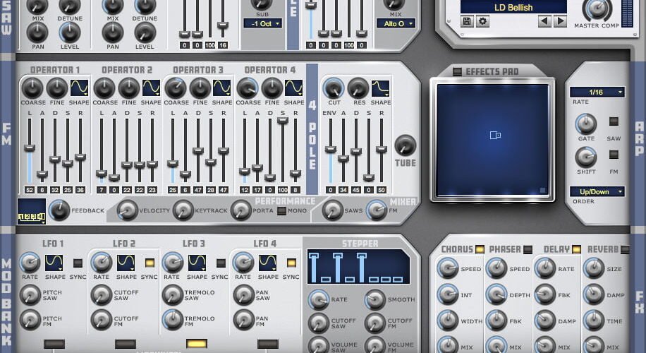 • Separate arpeggiators for the Supersaw and FM synths.