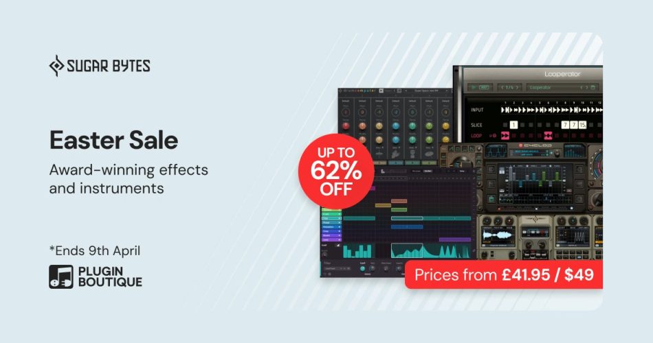 Plugin Boutique has launched the Sugar Bytes Spring Sale, with discounts of up to 62% off on synthesizer instruments and audio effects. The sale runs until April 9th, 2026. Products are priced starting from $49 USD.